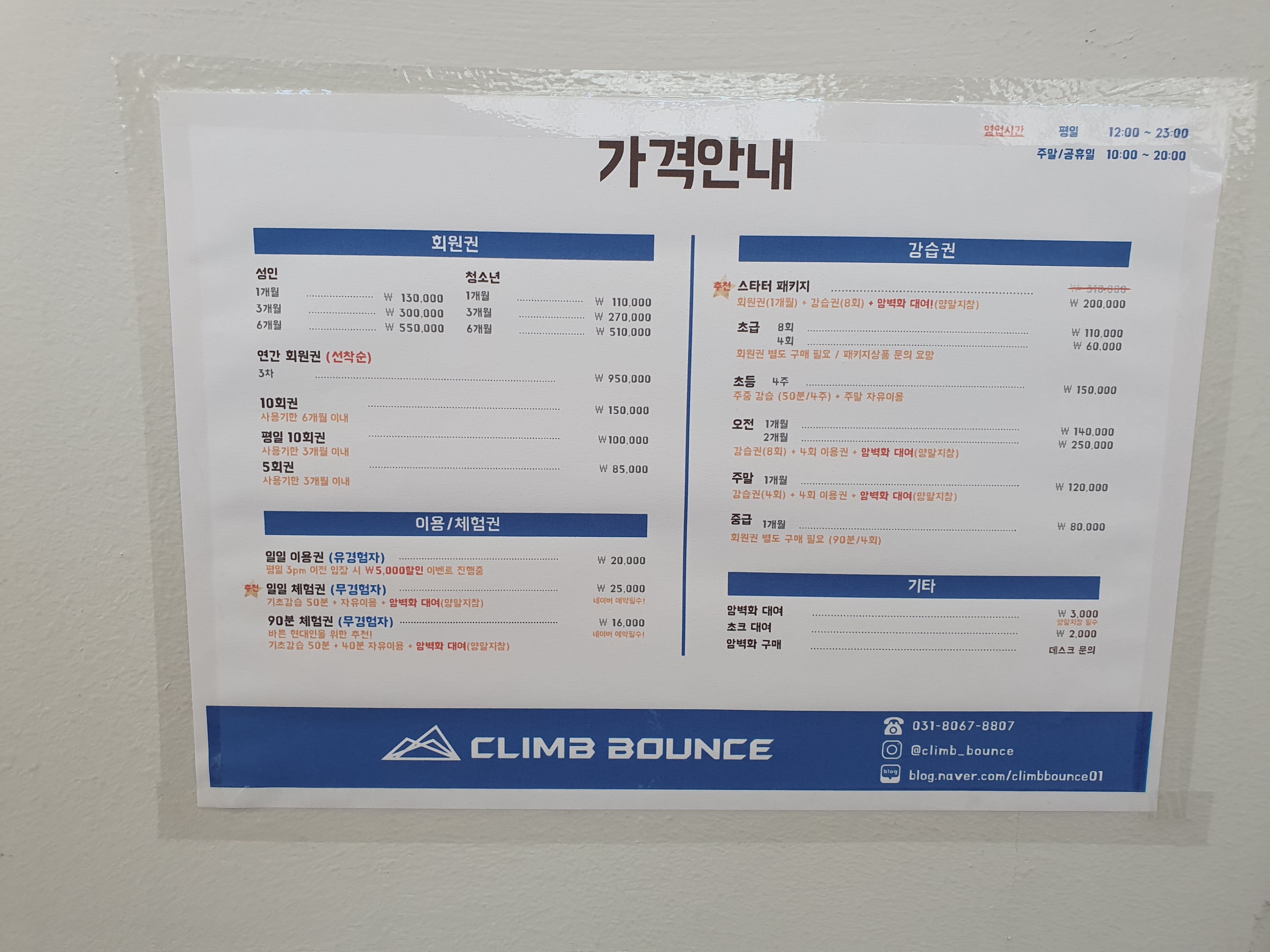 아내와의 첫 클라이밍 후기입니다. 일일강습+자유시간 패키지를 이용해서 40분 강습 후 자유시간을 즐기다 왔습니다.