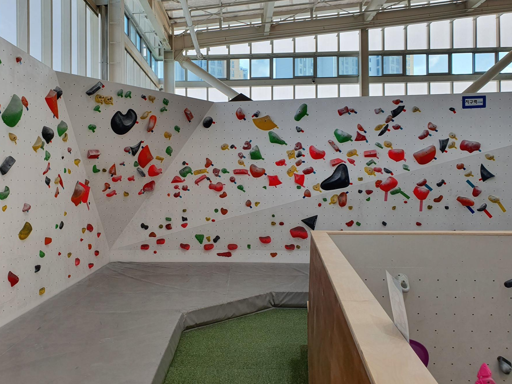 저희는 자유시간에 2층 강습장에서 오래 있었어요. 2층 강습장은 강습장A,B 지구력 Zone 으로 나뉘어 있습니다. 일일이용자 대상 강습은 강습장A에서만 했고, 강습장B 와 지구력 Zone 는 이용자가 많지 않아 쾌적했어요.